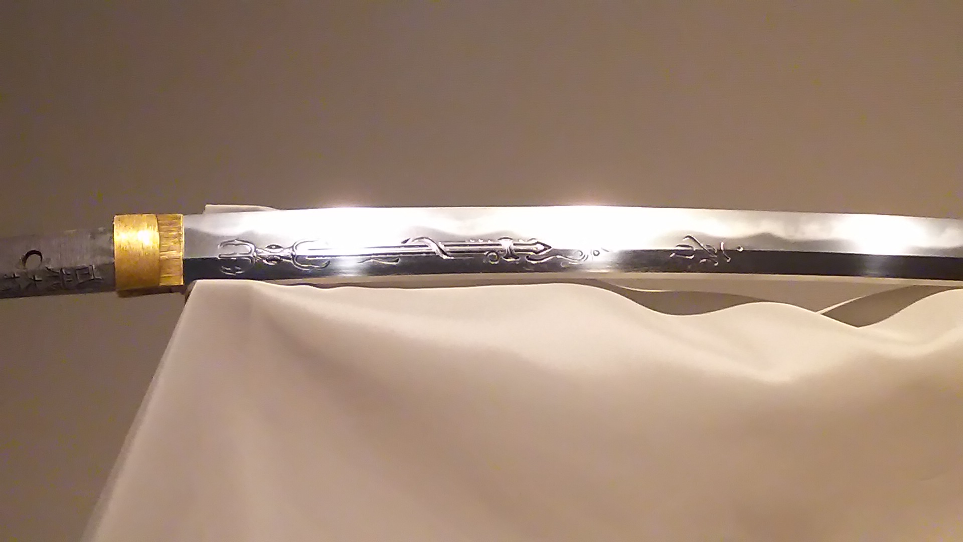 というわけでソハヤノツウツスナリの写しです。写しの写しってなんて表現すればいいのでしょう?太刀としての大きさは普通くらいでしょうか。まだ作られて新しいものなので、傷も無くとても綺麗です。本物を見に行く機会は滅多にないと思うので、ここで写しでも見れたのはとても幸運でした。