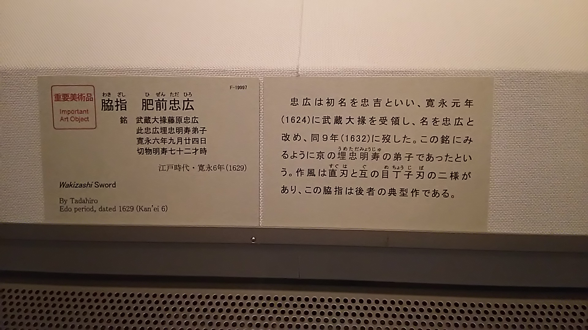 どうも菌です。過去の写真を整理していたところ、トーハクにてまだその頃は未実装だった肥前忠弘を見に行っていたので、それだけ記事にしておこうと思います。ちなみに、メインの目的は亀甲貞宗でした。