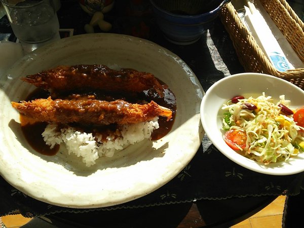 そしてやって来ましたエビフライのカレーです。こいつ本当にカレーばっかり食ってるな。エビフライはとてもサクサクだし、ボリュームもあるし、薬味の種類も多いし、とても美味しかったです。他にも日替わりのお弁当などもあるようなので、今度訪れる機会があったらそっちも食べてみたいなあ。