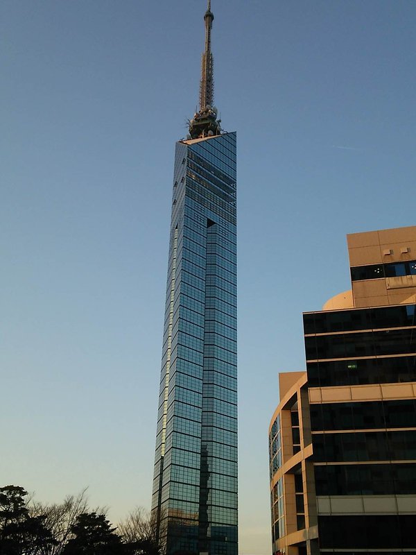 博物館の閉館時間も近付いてきたので、すぐ近くにある福岡タワーまでぶらりと歩きます。せっかくなので、福岡タワーにも登ってみることにしました。ここは地上と展望室の間が空洞になっているらしく、高さが200メートル以上あるにも関わらず、階数的には5階までしか無いのだそうです。
