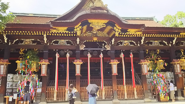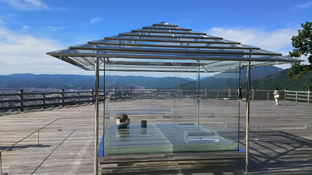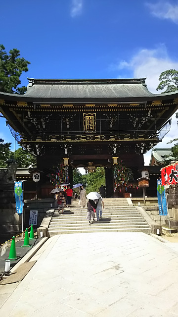 滋賀・京都に遊びに行ってきました。二日目②。 刀剣乱舞 2016年08月10日 どうもこんにちは、菌です。旅行二日目の後半戦になります。朝から比叡山延暦寺、近江神宮を訪問した後は、少し足を延ばして京都まで向かいます。夏休み真っ最中だからか、交通量はかなり多いです。グーグルナビを使いながら、交通安全で次の目的地へ向かいます。 そしてやって来ました、目的地の北野天満宮です!以前の大阪旅行では時間が無く行けなかったので、今回は多少無理を言って予定に入れてもらいました。次はいつ行けるか分からないですからね。なんだかんだ、やっぱり京都は遠いです。 両親たちはお昼ご飯のためにお店に並んでいるので、待っている間に別行動で宝物殿だけ先に行くことにします。いくつかの鳥居をくぐり抜けて、重厚な門を抜け、いざ宝物殿へ。歴史を感じさせる鮮やかな入口には七夕らしき飾りつけがされていました。 そしてようやくご対面することが出来ました、頼朝が持っていたと言われる鬼切丸こと髭切です。まだ刀剣乱舞ではゲット出来ていないので、願掛けも込めて見に行きました。今まで見た太刀と比べてとても大柄に見えます。かなり古い時代の太刀だからでしょうか。さすがは兄者! ここの宝物殿は刀剣以外にも鎧や秀頼公が奉納した大きな絵馬なども展示されています。職員の方なのでしょうか、絵馬やら刀やら詳しく説明してくださり、とても勉強になりました。 これ、一応脇差らしいです。どう見ても鉈。どうやって使用していたんでしょうか。ちょっと謎です。 重要文化財の太刀も何振か展示されています。こちらは秀頼公が奉納したもの。髭切と比べるとやや短い印象ですが、これくらいの長さがスタンダードなイメージですね。 こちらは重要文化財である青江恒次作の太刀です。数珠丸を作成した刀工ですね。トーハクで見た太刀と言い、青江派の太刀は大振りで豪快なイメージがあります。数珠丸はどうなんでしょうね。気になるところです。 こちらは前田家が奉納した古備前の刀です。さきほどの青江派のものと比べて、やや小ぶりですね。持ち主のサイズに合わせたんでしょうか。 こちらは珍しい直刀。平家の太刀「小烏丸」と作りが似ているそうなので、小烏丸造りと呼ばれているそうです。鞘もたくさんの石で装飾されていてとても綺麗!見た限り儀式などで使いそうな感じですね。 珍しい薙刀なども展示されていましたよ!本当に多くの刀剣が展示されており、ひとつひとつ見ていくだけでもとても大変でした。嬉しい悲鳴ってやつですね。そうこうしているうちに両親から連絡が入ったので、大急ぎでお店に戻ります。 というわけで、北野天満宮のすぐ近くにある「四恩」さんでお蕎麦を頂きます。京都らしくさっぱりおだしで美味しかったです。涼と水分補給も出来たので、両親と一緒に再び北野天満宮へ向かいます。宝物殿は先ほど行ったので、今度は境内の方へ。 境内ではここで取れたらしい梅が天日干しされていました。梅干しのにおいが充満してお腹が空く!しかしとても落ち着いた素晴らしい場所でした。ただとてつもなく暑かったのが個人的に辛かったです…次行くとしたら冬かなあ。冬もちょっと寒いので困るところ。 その後は両親のリクエストで将軍塚に行きました。ここはとても開けた展望台もあり、こんな感じで京都を一望出来たりします。晴れているからとてもいい景色!それから展望台にあるこの総ガラスの茶室、とてもオシャレそうですがこの時期に入ったら熱射病で倒れてしまいそうです。どういう目的で作ったんでしょう。 他にも青龍殿にある国宝、青不動が展示されていました。とても力強い不動明王でした。ただガラスなどで覆われていなかったので、保護的な意味で大丈夫なのだろうかとやや不安になってしまいました。 というわけで、二日目の行程もこれで全て終了です。この前の旅行では見れなかった髭切をようやく見ることが出来てとても幸せでした。三日目もいろんなところへ行く予定なので楽しみです。というわけで、簡潔ですがこれで日記は終了です。お疲れ様でした!