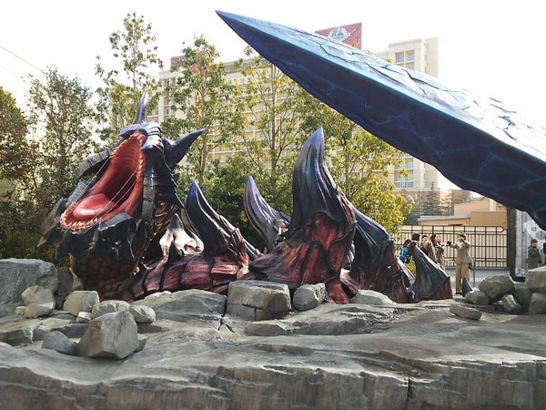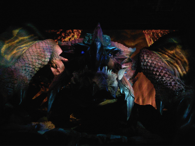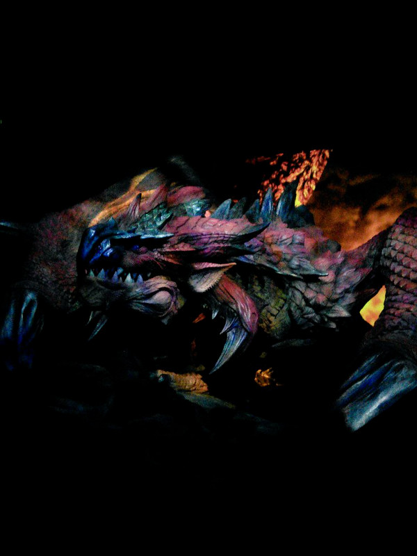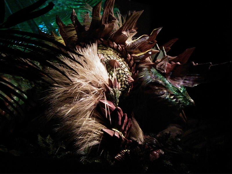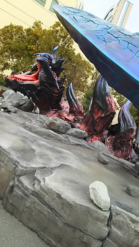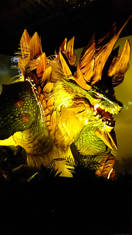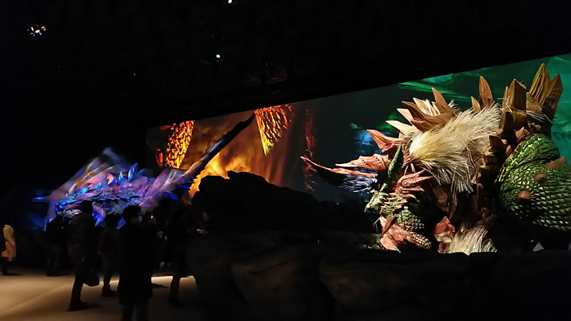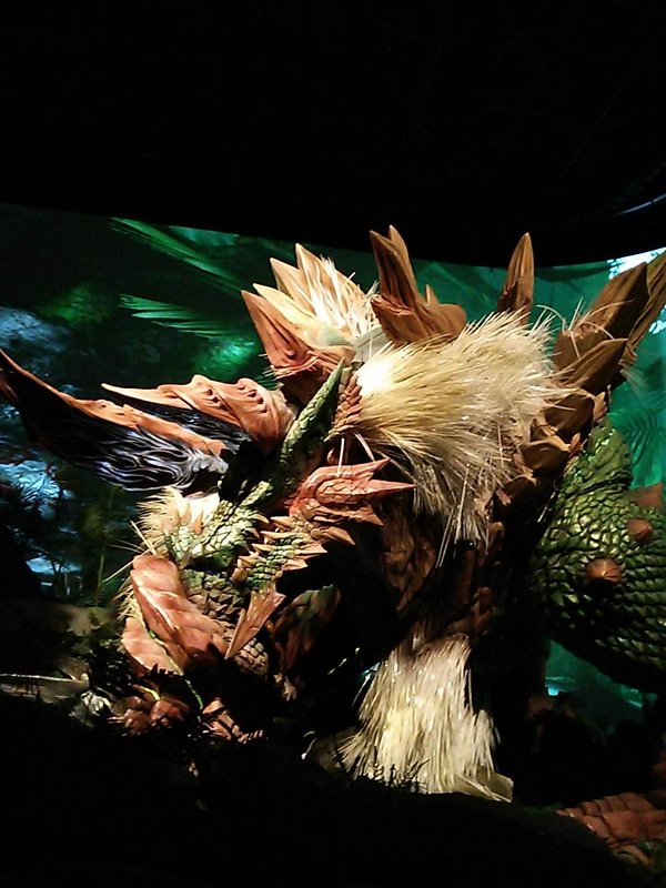 そしてやって参りましたジンオウガです!おそらく去年のものを流用してカラーリングを変えたりしただけだと思うのですがやっぱりかっこいい!素敵!わんわんお!そして去年と同じように一定の時間になると動き出して吼えます。曲もMHXの仕様になっていたと思うんですがおぼろげなので違ったかもしれないです。