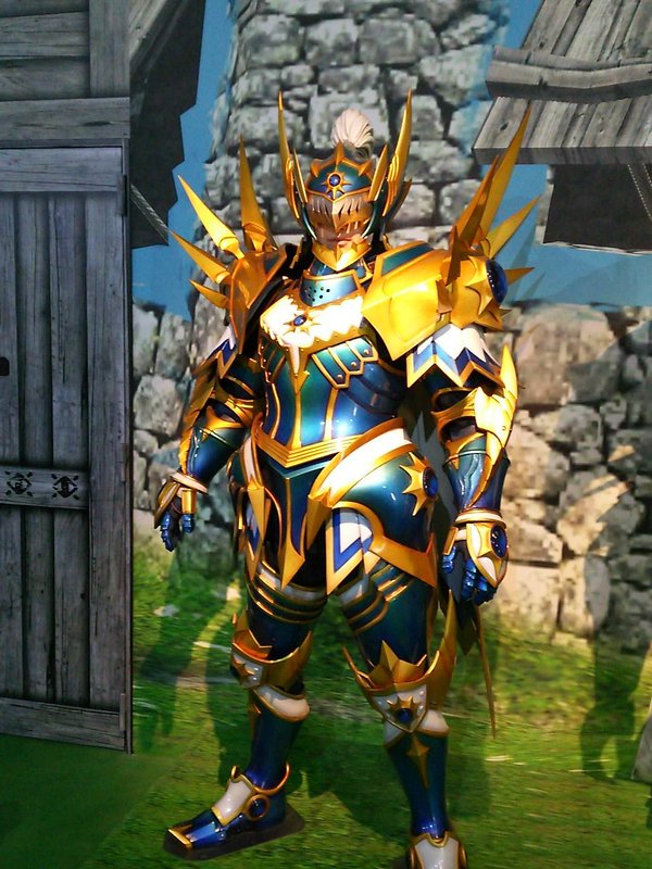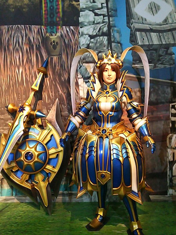 ちなみにジンオウガたちへ向かう通路の途中ではこんな感じでUSJコラボ装備が展示されていました。見切れちゃってるけど剣のデザインがものすごくカッコいい。