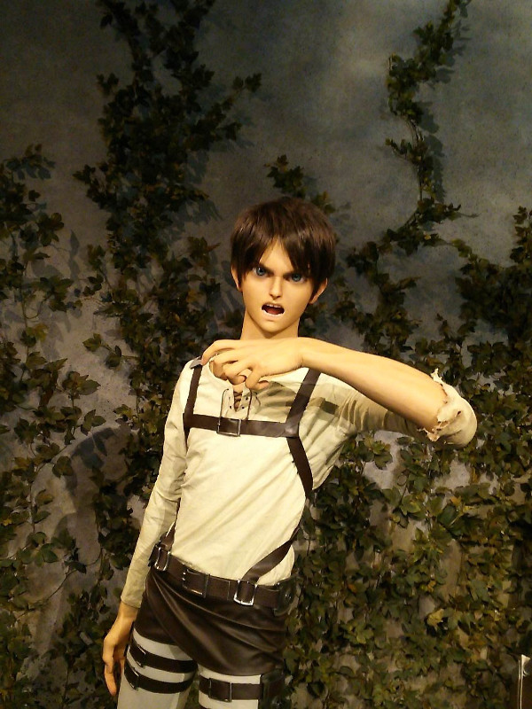 一通りジンオウガを堪能してブースを出ると、すぐ隣の進撃のブースの待ち時間がほとんど無かったのですぐさま突撃しました。前回はものすごく混んでいて入れなかったのでチャンスです。こちらはクロノイドと呼ばれる精巧な等身大の人形なのだそうです。