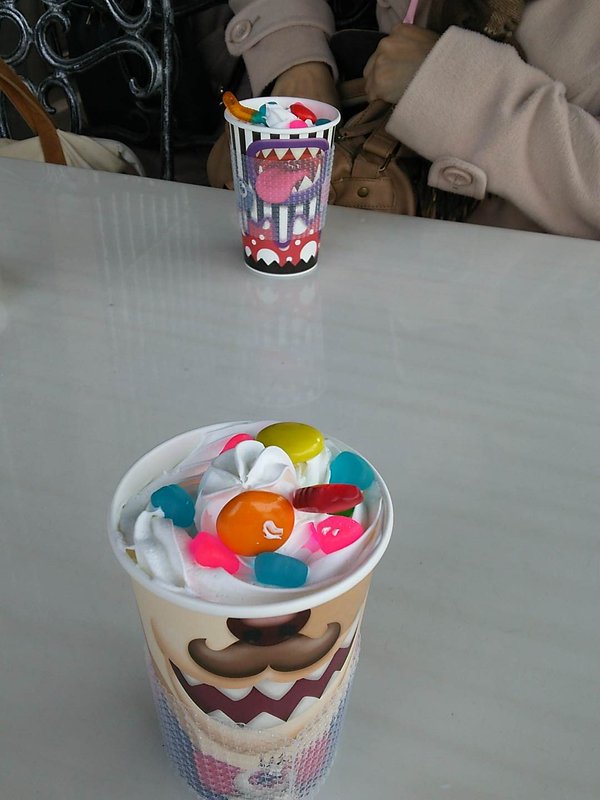 しこたま進撃を堪能したので、休憩がてらきゃりーぱみゅぱみゅプロデュースのホットチョコドリンクを頂きました。すごいきゃりーさんっぽい。味は予想通りの甘さでした。こいつら甘い飲み物しか飲んでねーな。