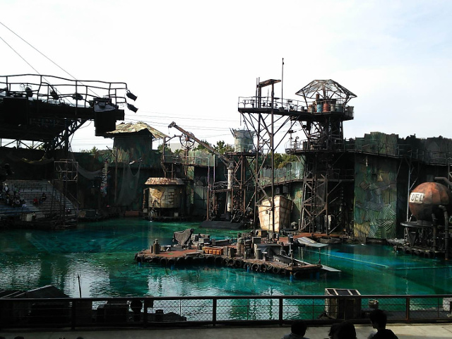 ショー自体はものすごい迫力で楽しかったです!炎がバーン!と勢いよく噴き上がったり、水しぶきが座席にまで降りかかってきたりとド派手でした。ジェットスキーあり、銃撃戦ありと、想像していたよりも激しいアクションが多かったです。それから昔CMで良く見た、飛行機がこっちに突っ込んでくるシーンもすごかったです。シリアスとギャグのバランスも良く、とても楽しめました。俳優さんもみんなカッコ良かったなあ。