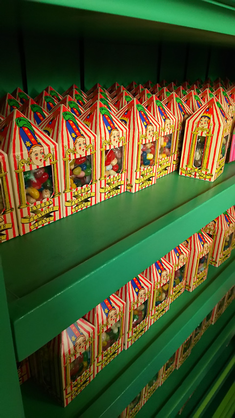 何とかすぐに入れたものの、店内はとても混んでいたので写真撮影は困難でした。なので、とりあえず撮影出来そうな百味ビーンズとカップケーキだけ撮影してみました。カラーリングがとてもかわいい!他にもカエルチョコやら、ハリポタの劇中に出てくるお菓子がたくさん並べられていました。