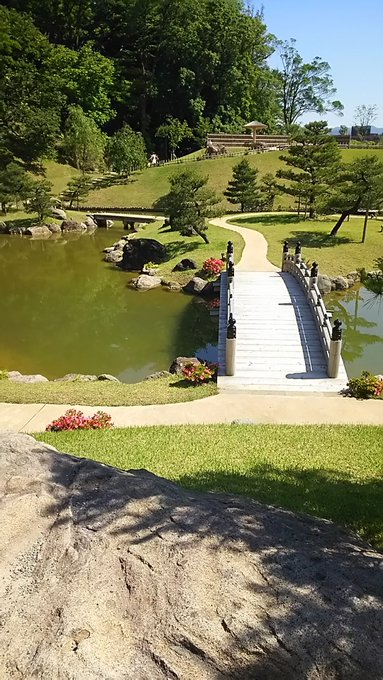 こちらの庭園もかなり広かったです。兼六園に比べると小さいですが、こちらは歴代藩主が楽しむ私的なものだったようです。だから小舟が浮かべられているんでしょうか。ここにもボランティアの方が駐在していて、お願いすれば庭園の案内などをしてくれるみたいです。