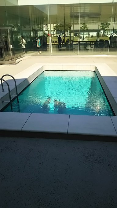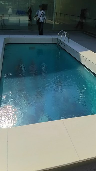 休憩も出来たので、そそくさと美術館に入ります。中にはレアンドロ・エルリッヒさん作のとても有名なプールの作品が鎮座していました。上から見るとこんな感じ。ちなみにプールの中は空洞になっていて、中に入って上を覗くことも出来ます。