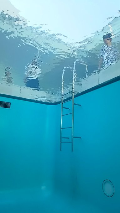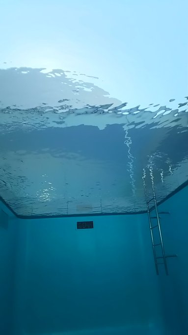 そしてプールの中の写真です。下から見るとこんな感じになります。ずっと上を見ていると、水の中ではないのに中にいるような、何だか不思議な感覚になりました。