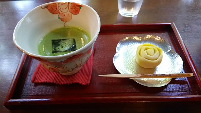 外がだいぶ暑かったので、水分補給も兼ねて野村家屋敷のすぐ隣にある、茶房工房「たろう」さんへお邪魔します。ここのお店は和菓子だけでなく、金沢の名物である水引のアクセサリーなども販売していました。というわけで、日本家屋の雰囲気を味わうために抹茶と和菓子を頂きます。とても美味しかった!
